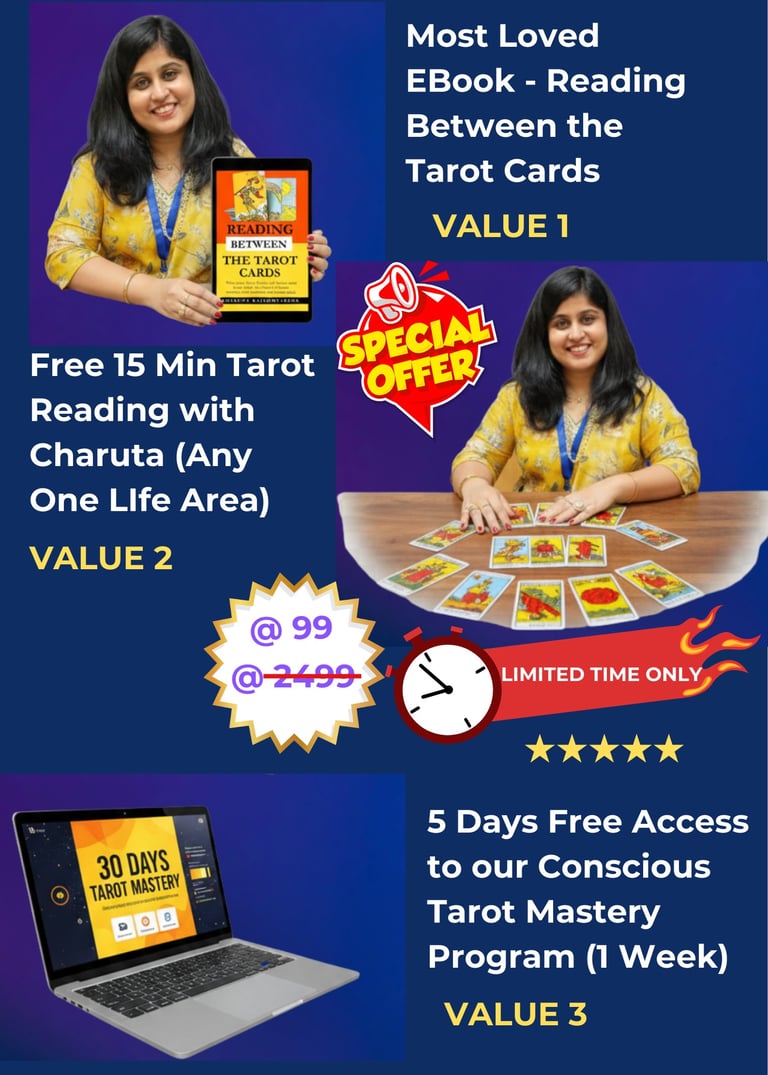 Having conducted hundreds of transformative Tarot sessions, Charuta has developed a deep sensitivity to human psychology, emotional blocks, and the subtle energies that shape life experiences.